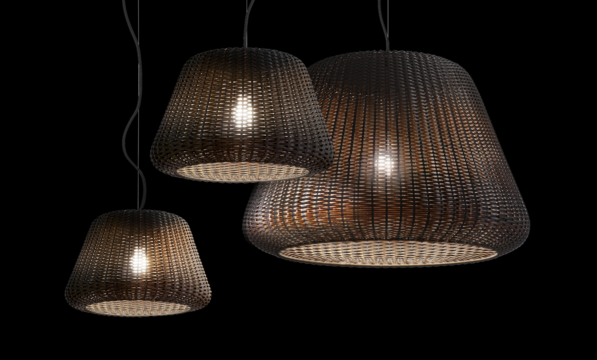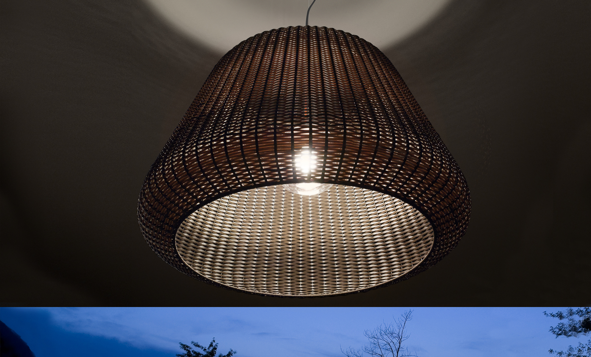 Lampada a sospensione con paralume in rattan sintetico intrecciato a mano colore marrone. Diffusore in policarbonato trasparente con portalampada E27. Diffusore con attacco a baionetta studiato per permettere una facile rimozione per l’eventuale ritiro del paralume durante l’inverno. Versione a sospensione fornita con 1 cavo di alimentazione in colore nero (versione da 90 equipaggiata anche con 1 cavo di sospensione in acciaio). Disponibili accessori per fissaggio a parete. Ideale per zone living esterne o illuminazione di giardini.
