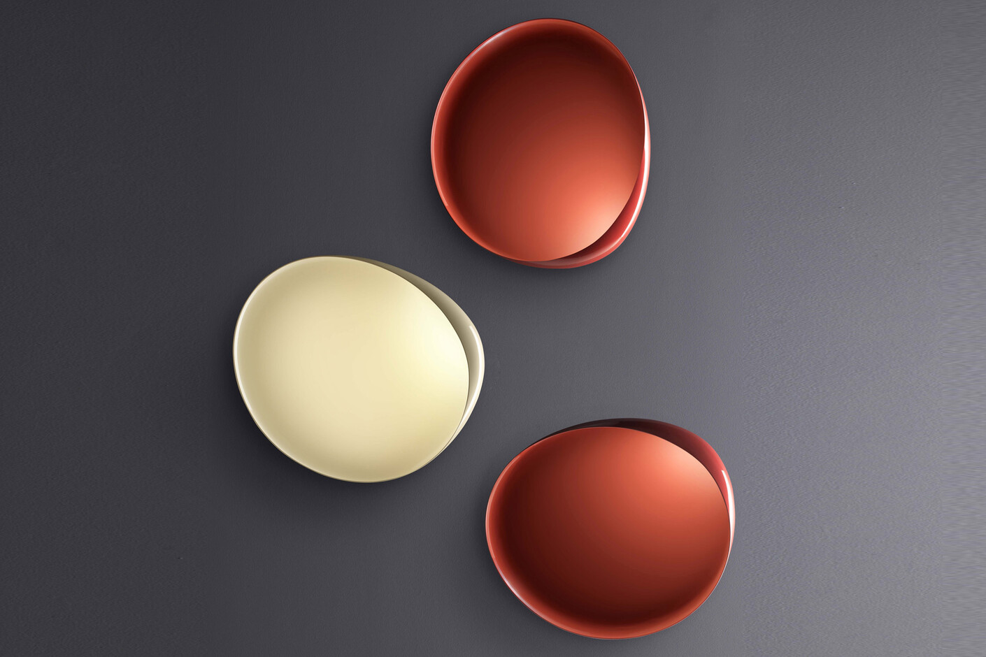 Lampada da parete a luce diffusa e riflessa. Il diffusore è realizzato in ABS stampato ad iniezione e successivamente verniciato a liquido. La montatura a parete in pressofusione di alluminio funge da dissipatore della scheda LED, è verniciata a polveri epossidiche color bianco. I LED sono alimentati a tensione di rete diretta (senza alimentatore) e dimmerabili. La scheda LED è protetta e nascosta da un piccolo diffusore in policarbonato. Per aumentare la luce e migliorare la distribuzione sul piano del diffusore sono stati inseriti due schermi riflettenti nell’alloggiamento dei LED. Può essere installata in due posizioni sull’asse verticale orientando la luce verso l’alto o verso il basso. Dimmerabile con varialuce per moduli LED SEOUL-ACRICH.